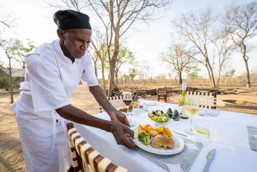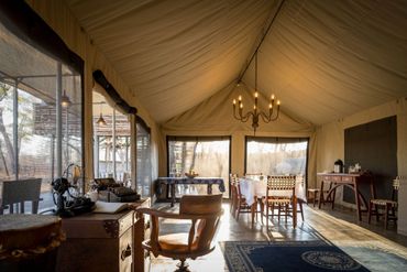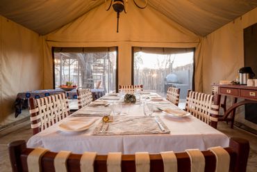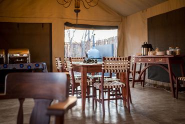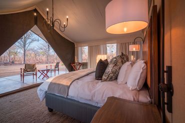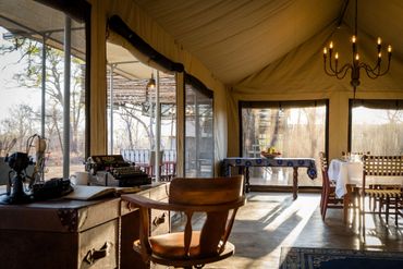 Zingweni Vlei features four meticulously designed tented suites, each a sanctuary beneath shady teak and umtshibi trees. Spacious and airy, the tents are adorned with bespoke furniture crafted from rich teak wood, complemented by carpeted concrete floors and white denim-lined walls. Thoughtfully curated linens, earthy tones, and artisanal touches immerse guests in the wild beauty of the bush while maintaining unparalleled comfort.